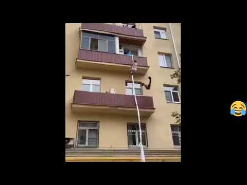 這段影片疑似在俄羅斯莫斯科拍攝,影片中可見一條由白色床單綁成的繩索,