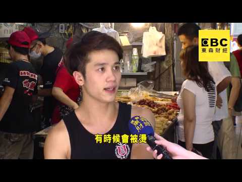 23歲林國恩體校出身,練出六塊肌的好身材,他在炸天婦羅攤位幫忙,